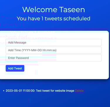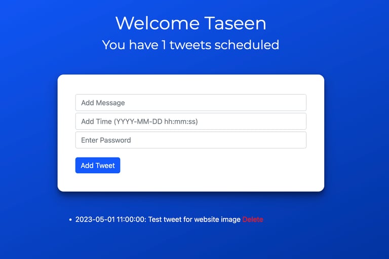 Python application developed in Flask that enables a user to create tweets for personal Twitter account in advance. Application is deployed via Heroku and data is saved into Google Sheets. Solution uses packages Tweepy to access Twitter API and Gspread to access Google Sheets API.