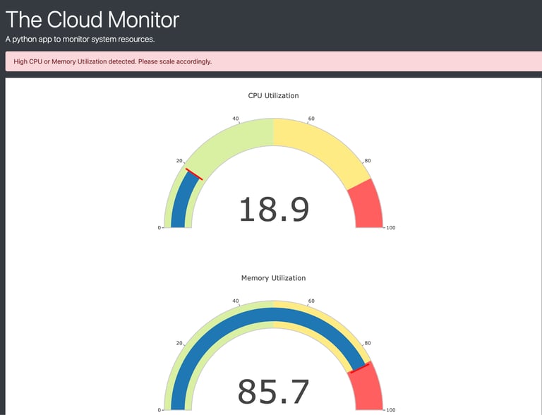 Python application developed in Flask designed to monitor system resource utilization in the cloud and notify user to scale according if the system is reaching peak load. Application generated a Docker image, image was pushed into AWS Elastic Container Registry, and Kubernetes Cluster was created using AWS Elastic Kubernetes Service in order to deploy application. AWS ECR and EKS configurations were done in Python using Boto3 SDK.
